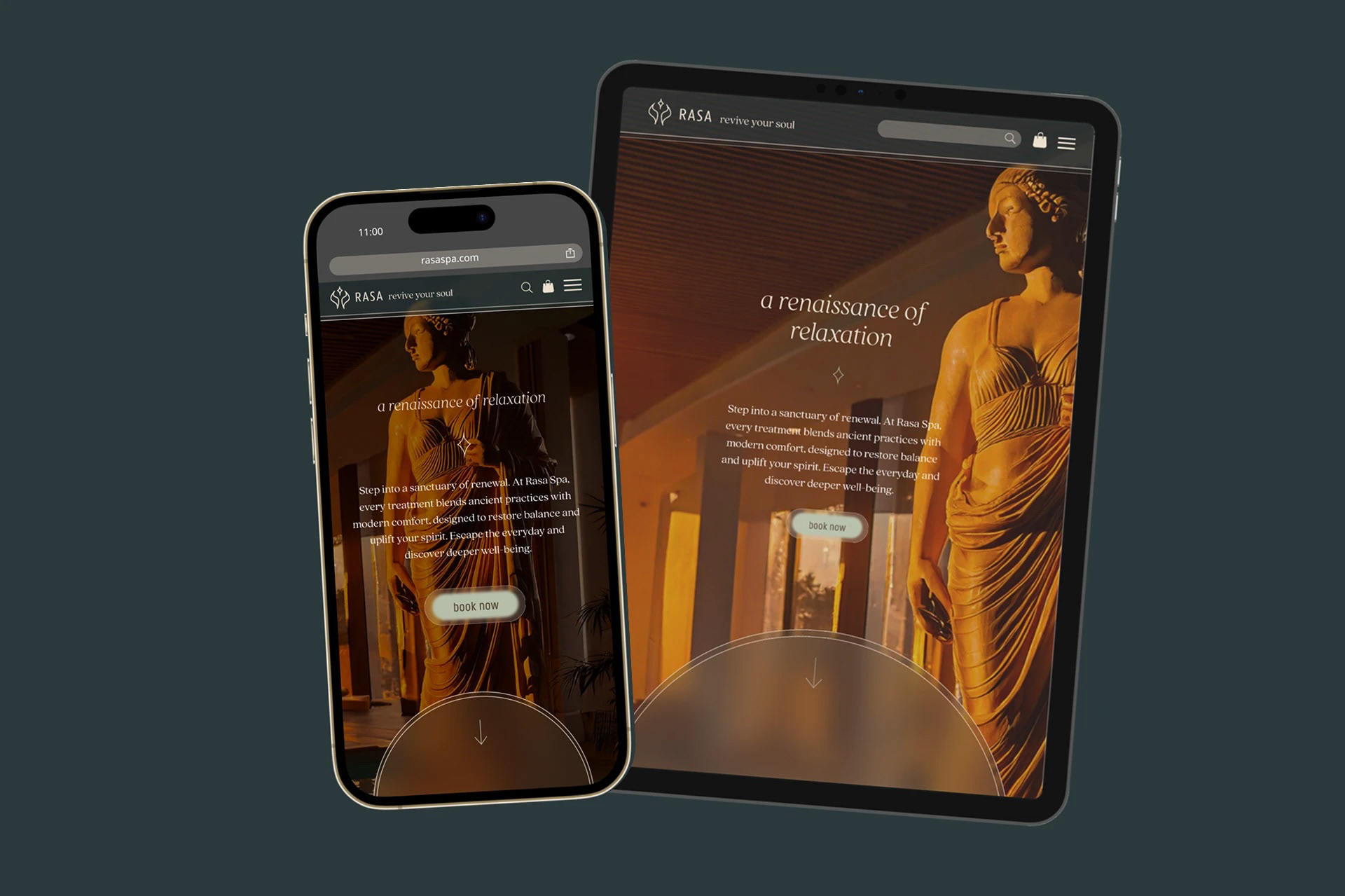 I collaborated on a full website and brand refresh for Rasa Spa, introducing a Renaissance-inspired visual direction that reflects its holistic healing philosophy. We designed a new logo, refined the brand identity, and built a fully functional website with intuitive navigation to showcase the services and products they provide while maintaining a calm, restorative tone. I managed the navigation, consistent elements (logo, type, brand identity, etc.), the colors, and how information was laid out.